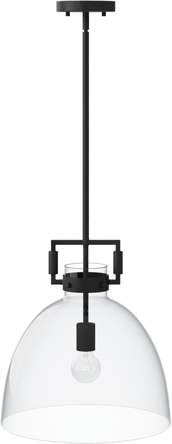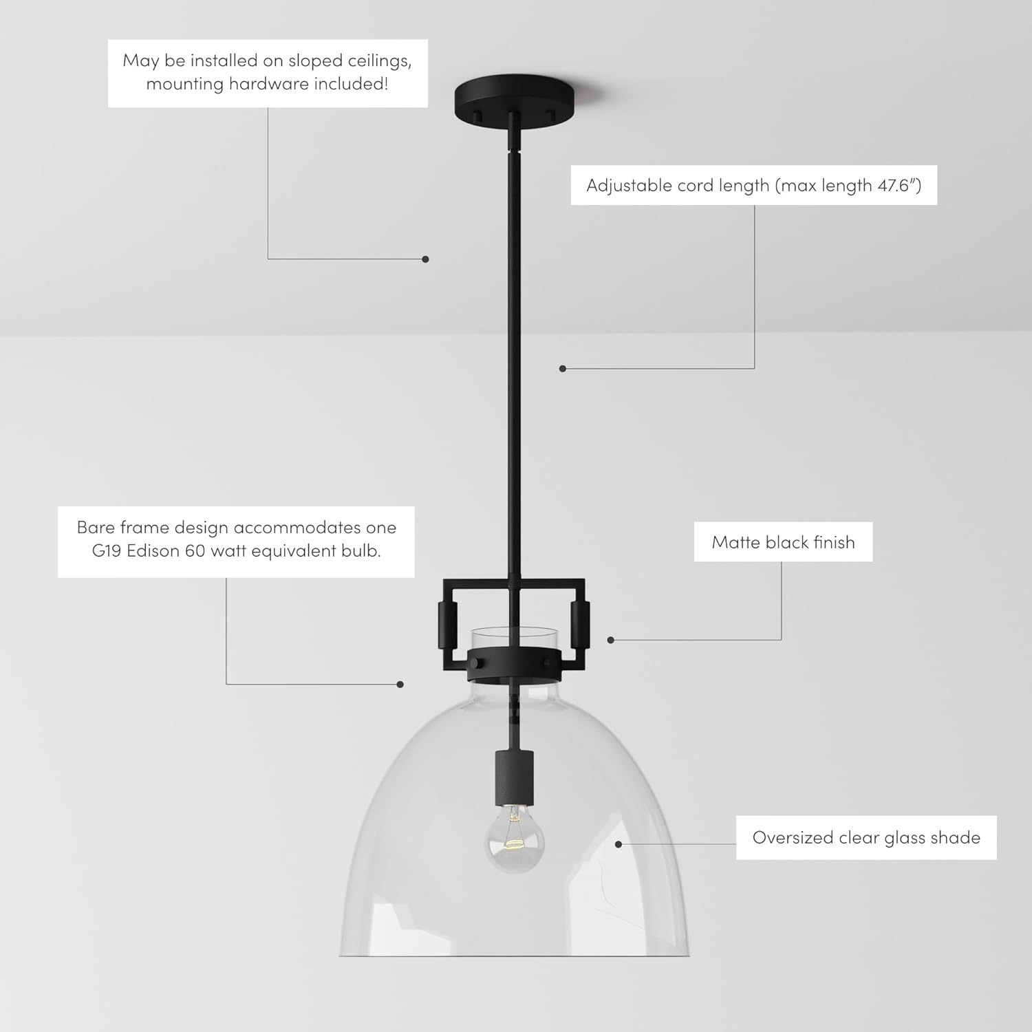 Nathan James Leigh Pendant Lighting, Black Hanging Ceiling Light with Oversized Glass Shade and Adjustable Cord, for Kitchen Island or Entryway, Matte Black/Clear