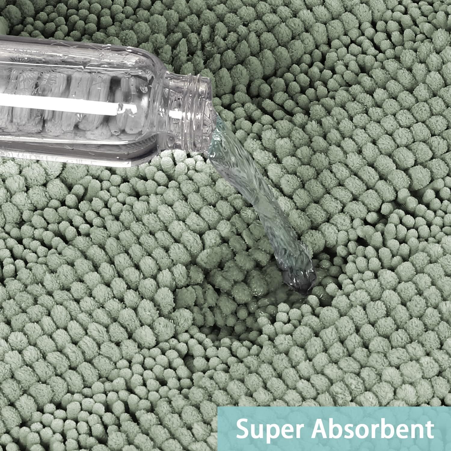 Turquoize Sage Green Bathroom Rugs Runner Extra Long Large Bath Mat Plush Shaggy Chenille Bathroom Rug 47 x 17 Non-Slip Bath Rug Runner Extra Soft & Absorbent Thick Floor Mats, Machine Washable, Sage
