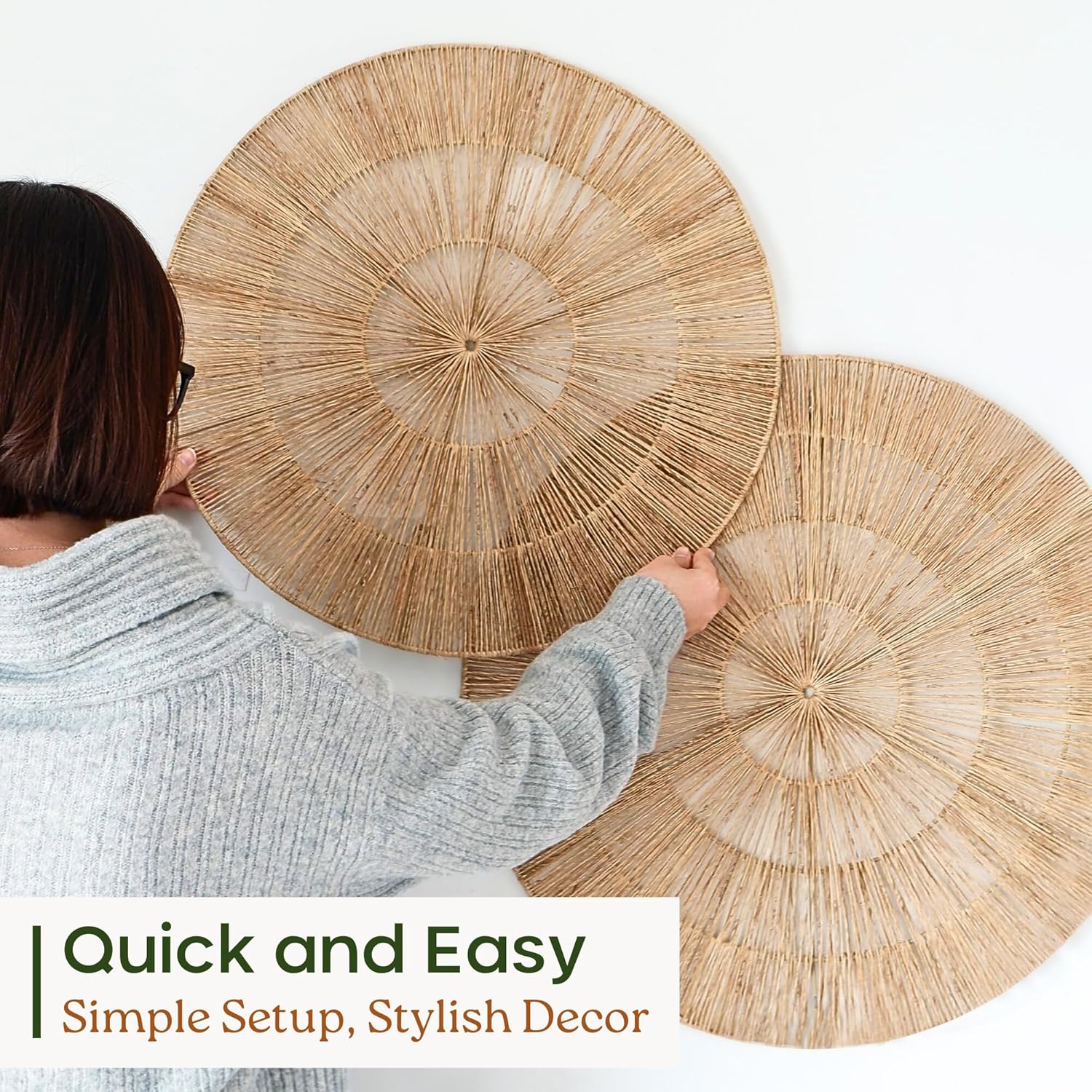 Elevate your walls with the Wicker 23 Inch Jute Wall Decor Baskets, Set of 6, and transform your space into a stylish and inviting oasis that reflects your personal style and taste. Add a touch of bohemian flair and natural elegance to your home with these exquisite woven jute wall baskets!